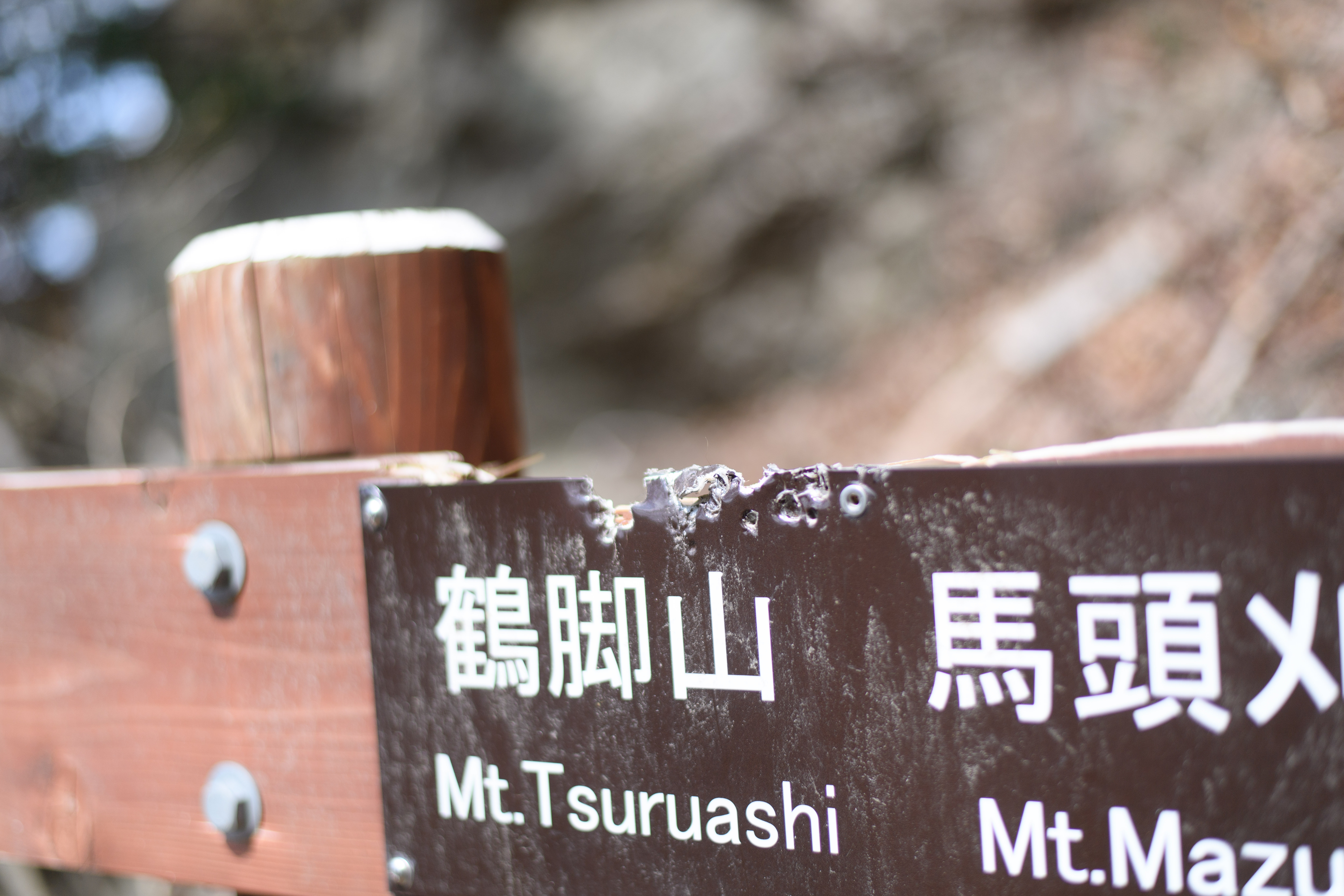 すでに17㎞を過ぎ、そろそろくたびれてきた。「ここからは下り基調だから、全然大丈夫」というまこっちゃんの言葉とは裏腹に、馬頭狩(まずかり)山までの尾根道の細かいアップダウンはけっこう足にきた。おまけに金属製の道標をふと見ると、散弾銃で撃ちまくったような跡がある。「熊が噛んだんだよね」。これには、すっかりビビってしまった。単独行はできれば避けた方がいいかもしれない。